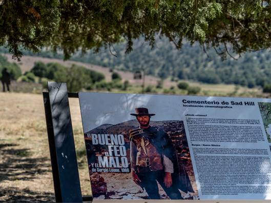 The 1966 Italian epic western of the same name made it easy for the movie-goers: Clint Eastwood is as clearly the good guy as Lee Van Cleef is the bad guy. The information board shown below will bring back your memories if you do not know what I am referring to. It features Clint Eastwood ("El Bueno") in Spain, where most of the Western was filmed.