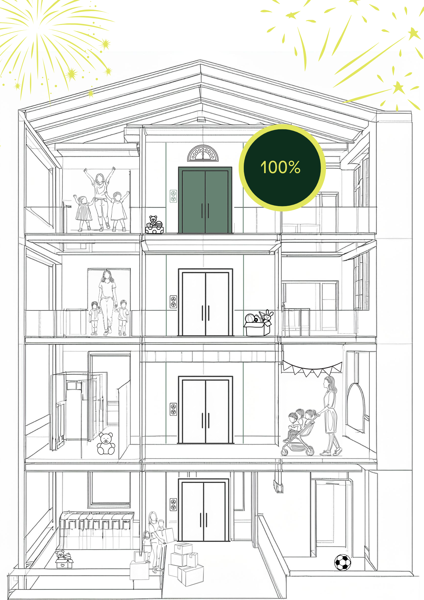- 3.The carer team can reach the families on the upper floors more quickly.